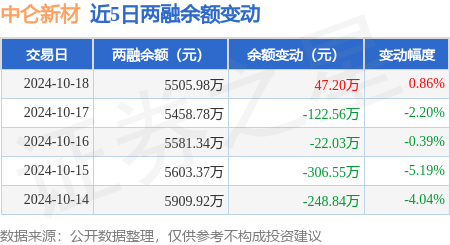 本站消息,10月18日,中侖新材(301565)融資買入948.97萬元,融資償還901.76萬元,融資凈買入47.2萬元,融資余額5505.98萬元,近20個交易日中有11個交易日出現(xiàn)融資凈買入。